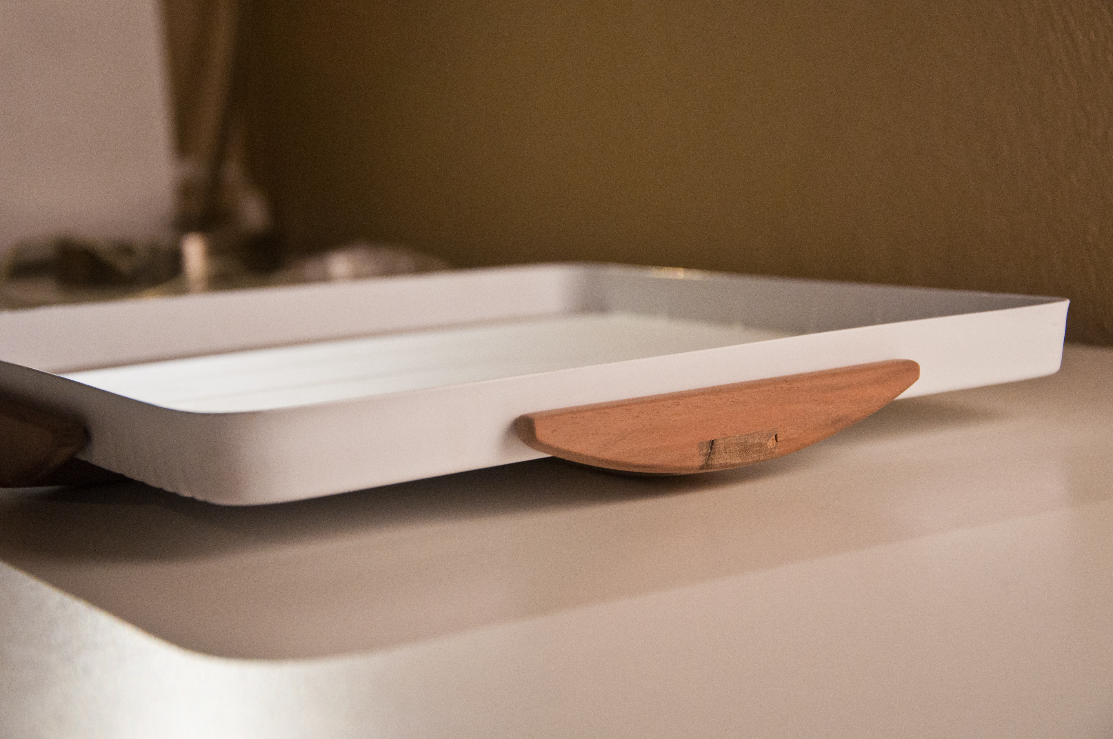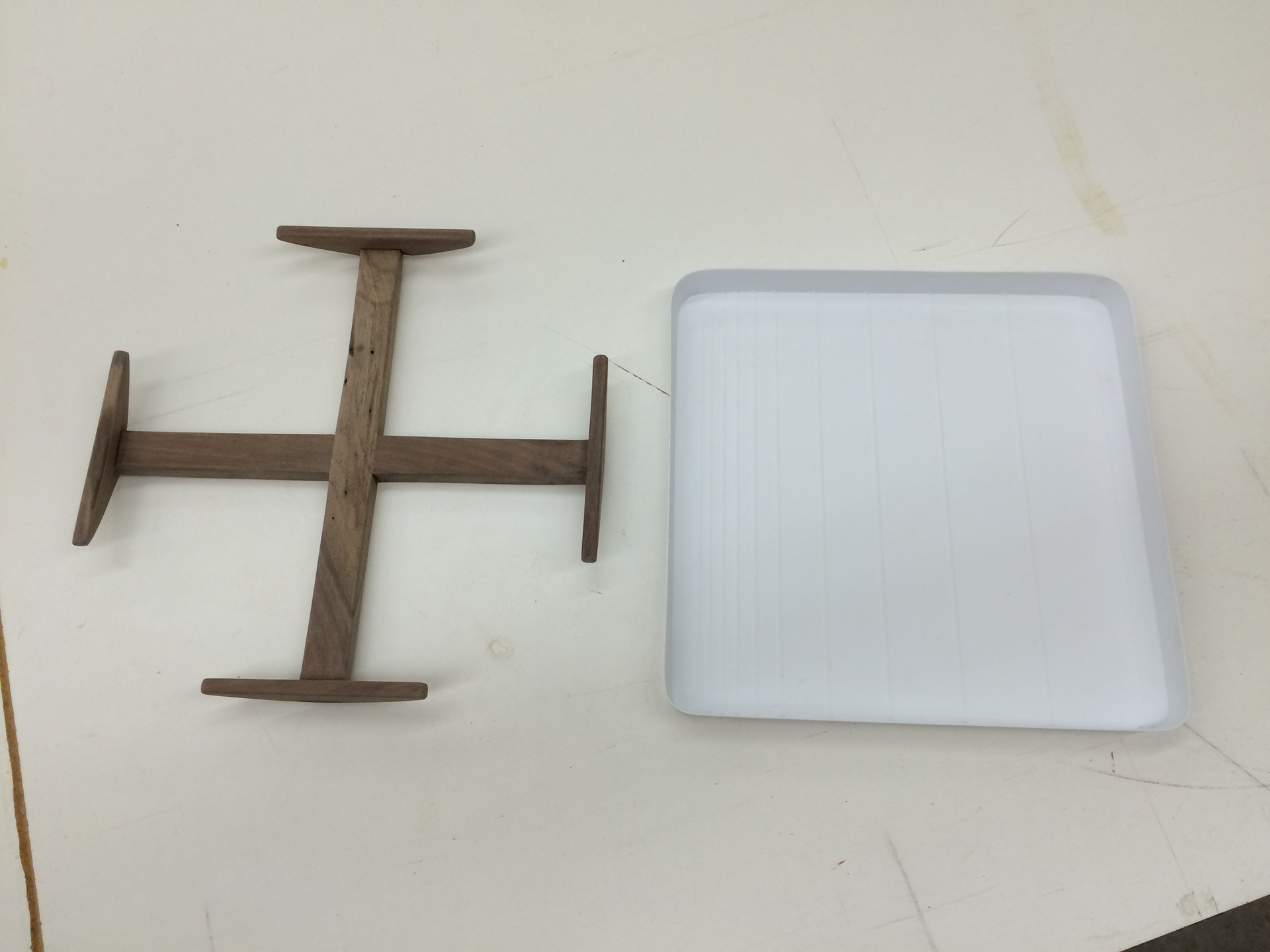 Using a vacuum former, polystyrene plastic, and walnut, I made a small TV tray with wooden holder unit.