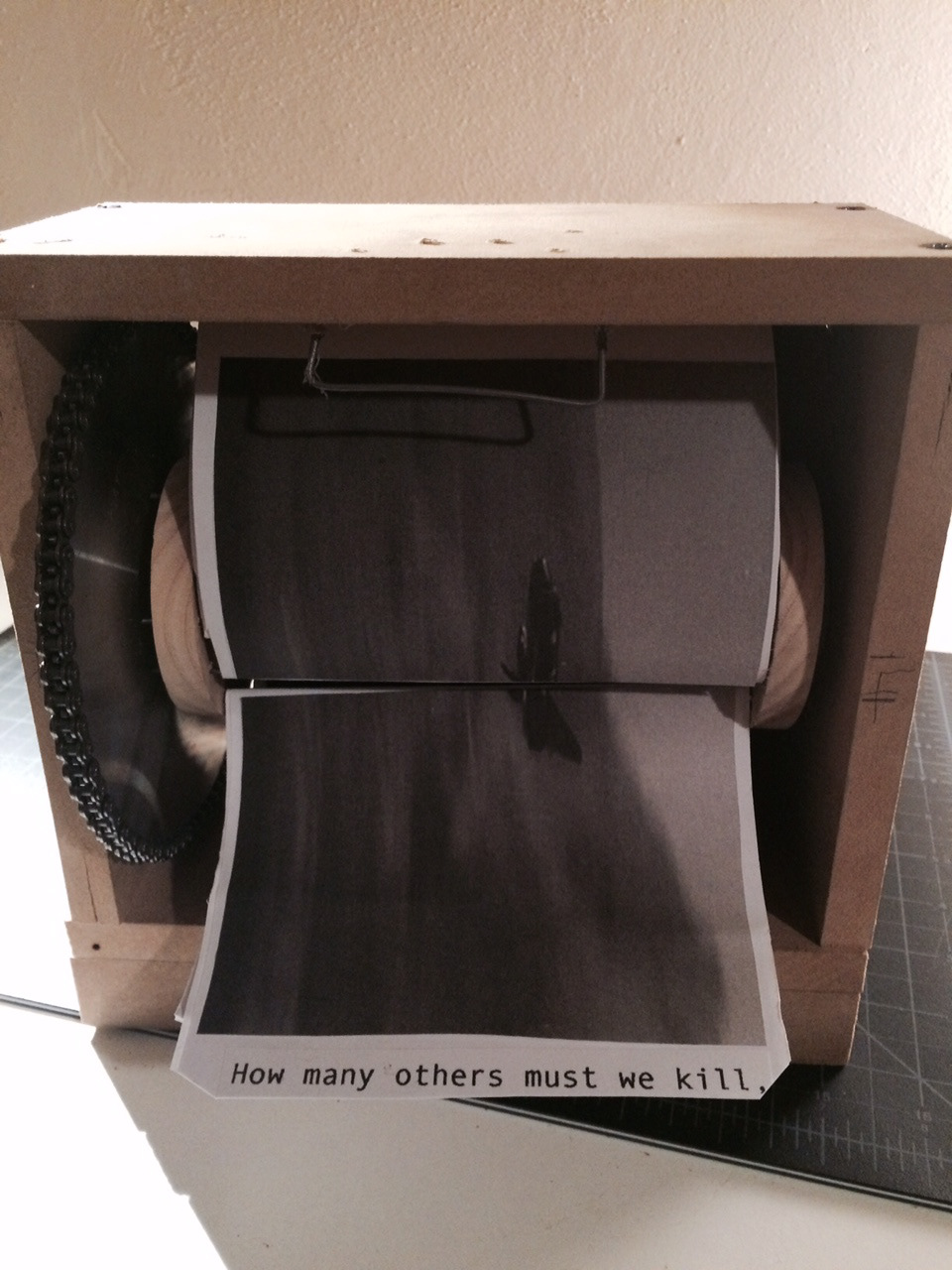An idea I got from the internet to create a flip book that required no input from the user, other than flipping a switch. The story would then play through a limited number of frames.